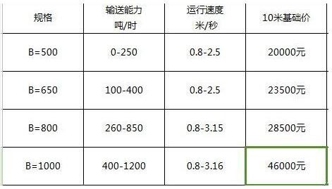 以下是皮帶輸送機(jī)一個(gè)參考價(jià)格,不代表實(shí)際的價(jià)格